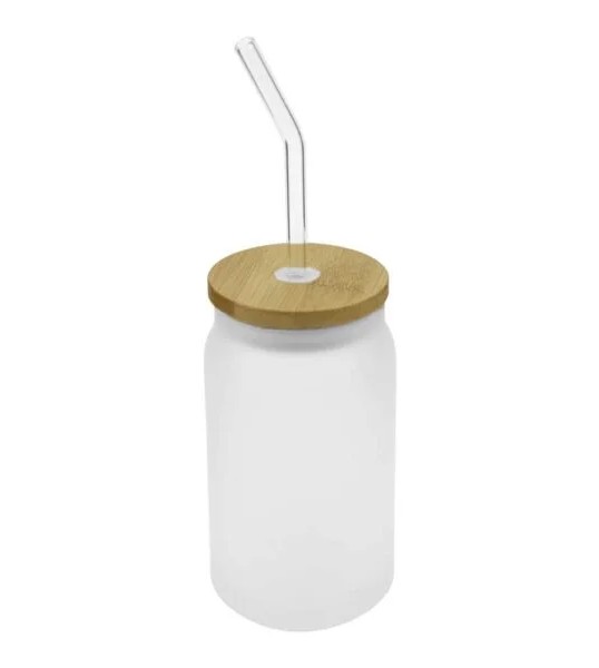 455 ML Glass Bottle with Straw and Bamboo Lid